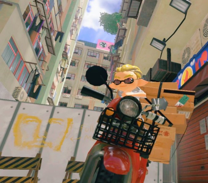 Losing my fucking mind, I just wanted a cool scooter picture of my squid but didn’t notice the Chris Pratt post in the background. #splatoon3