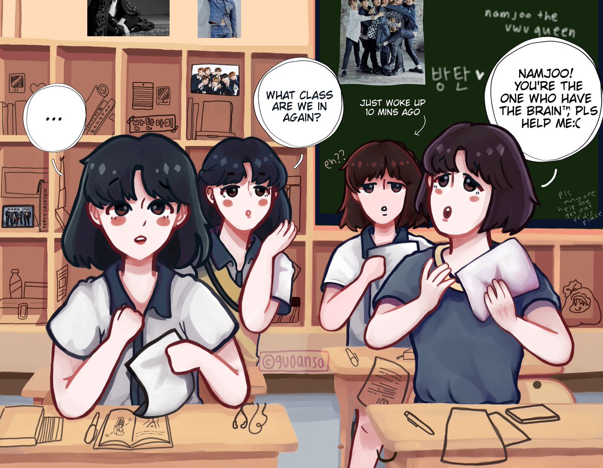 [BANGTAN SCHOOL AU 📖] girlies trying to solve some questions 👉👈 #btsfanart #theytriedtheirbestokay #bts #PremiosMTVMiaw #MTVBRKPOPBTS #MTVLAKPOPBTS #MTVLAFANARMYBTS @BTS_twt