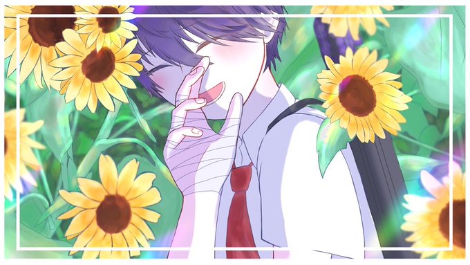 #まめねことレオス 春ひさぎ聞いてるの良すぎて描いてしまった……(まめねこ不在) ↓にメガネなし差分あり