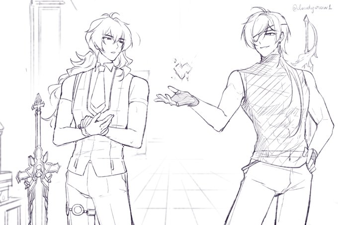 sketch #kaeluc day 4 & 5 gift inspired by my friend's fanfic. Rain always appeared on their important days, even the day Diluc confessed. When Kaeya knew that the feeling wasn't one-sided, he tried to act normal in return. Then, he was startled by the thunder and bit his tongue