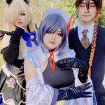 @nam76num thank you so much for letting me use your design!! With my maid friends 🤩 @sharkteeeeeth @naoorlater666 #cosplay #genshinimpact #genshinimpactcosplay #kujou #kujoucosplay #kujousara #saracosplay #kujousaracosplay #inazuma #inazumacosplay #maid #genshinimpactau