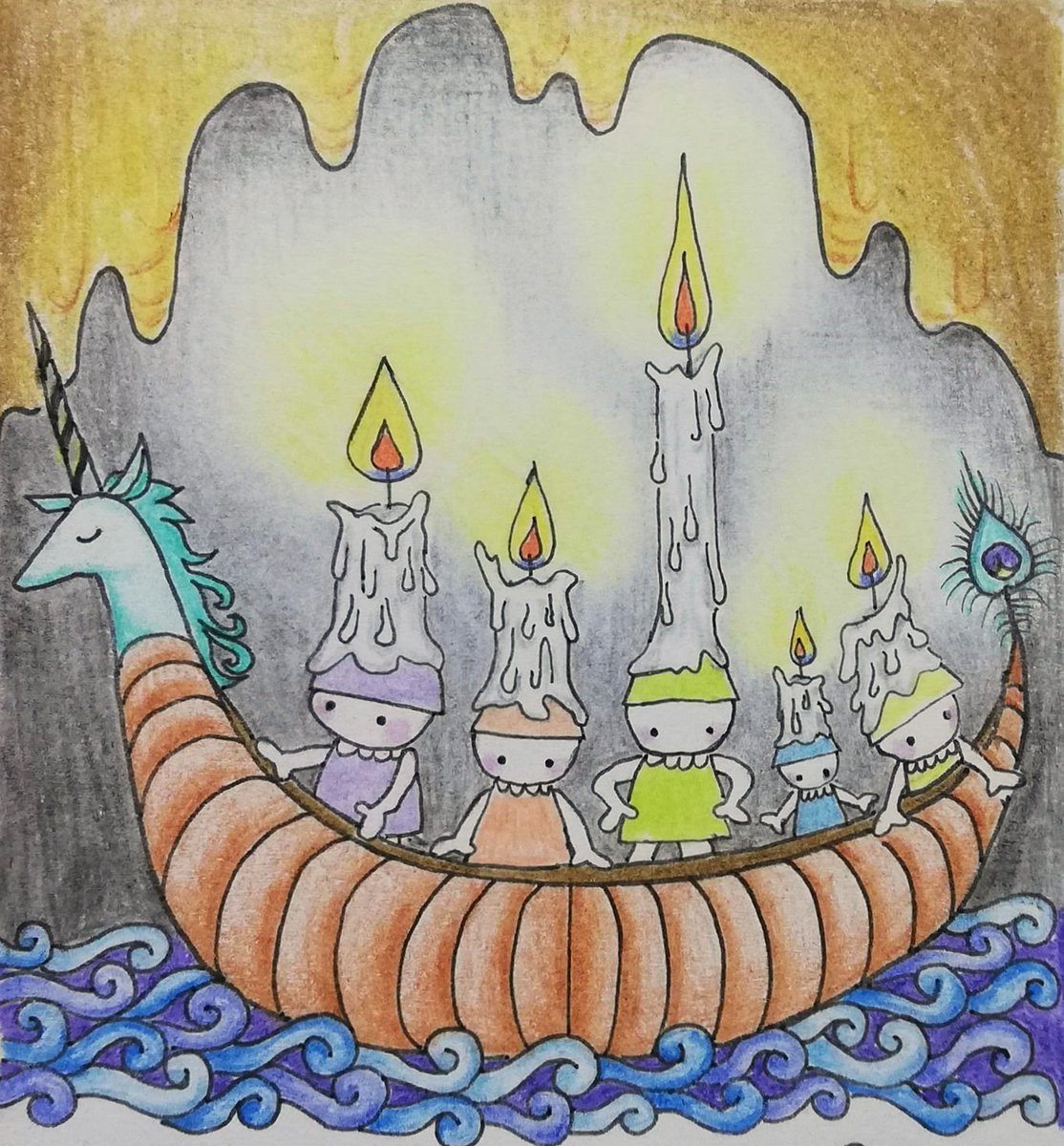 #今月描いた絵を晒そう ろうそくの子ども マーブルチョコの子ども 手紙の子ども ふゆの子ども はるの子ども 全部で何人いるでしょう?