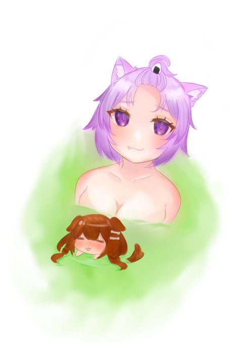 ころさんとお風呂🛁🫧 #絵かゆ #できたてころね #猫又おかゆ