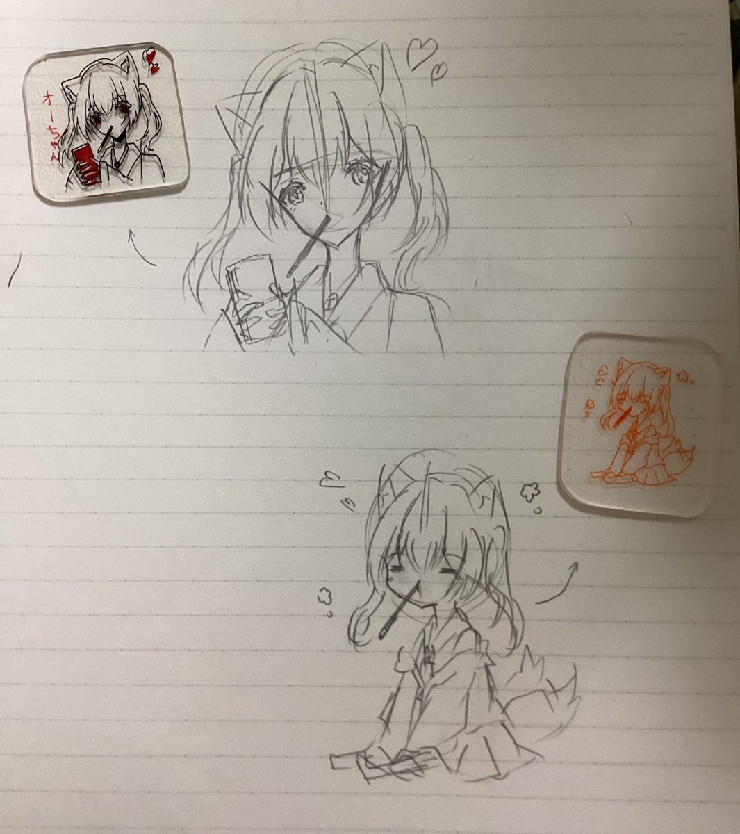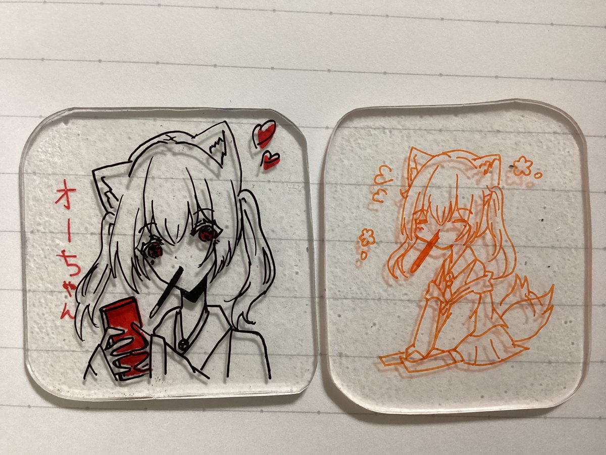14 35 #エルイラスト 今日ポッキーの日なので部活で『ポッキー食べてるオーちゃん』のプラ板作ってみました! 21/11/11 20:45
