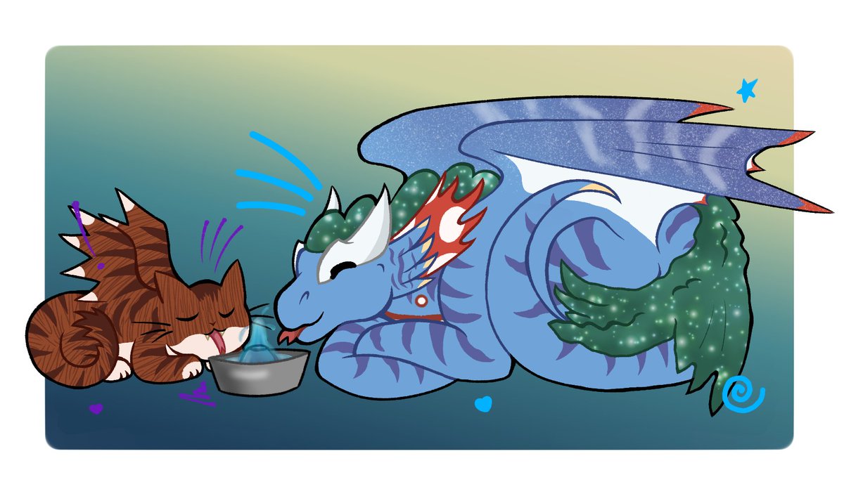 Day 7 of drawing dragon!Dream Team meet up! George and Patches drinking from the water bowl. #georgenotfoundfanart #dreamteamfanart #dreamteammeetup @Dream__Fanart