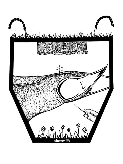 0 6 鬼と一緒に糸通し。 #絵画 #イラスト #点描画 #art #白黒 22/09/30 07:32