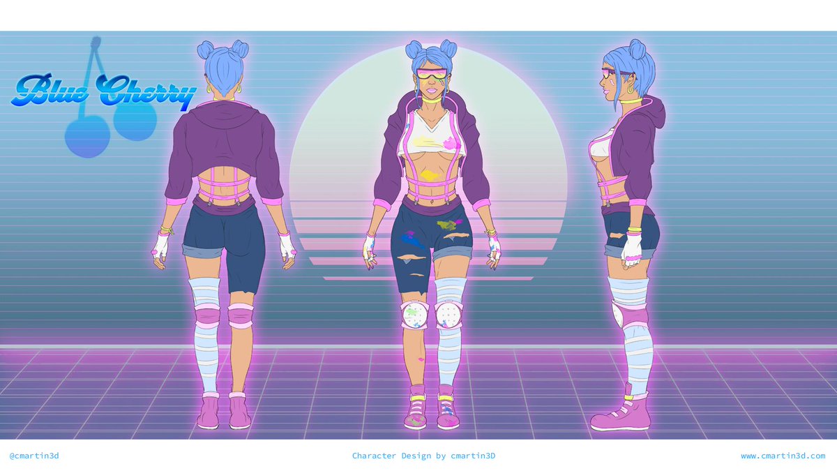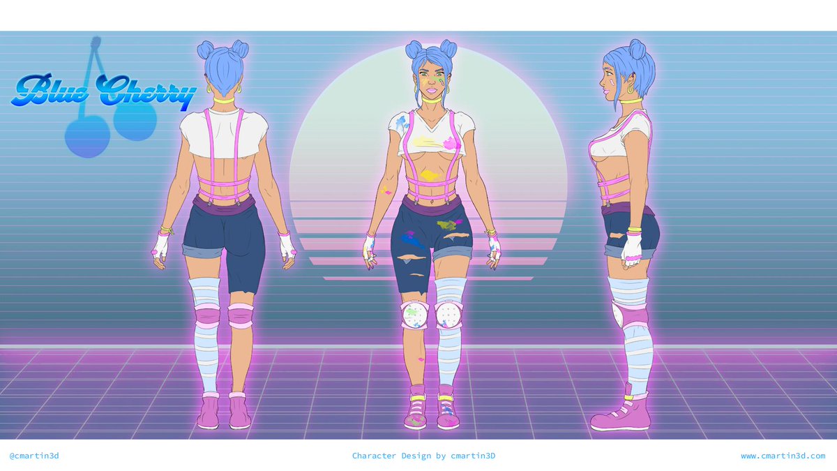 Character design for a personal project. 🖌️ Blue Cherry 🍒 #2dartist #characterdesign #characters #retrowave #synthwave #80s #ArtistOnTwitter #blueprint
