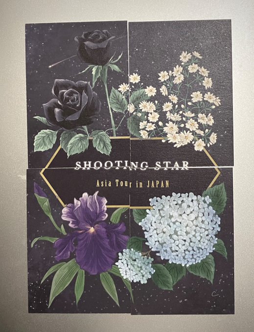 ギブアウェイ用にF4のカードを作りました💫 二日間行く予定です、よかったらもらってやってください 初めてのことなので何となく現場で様子見つつ当日もツイートします… 袋に入れたセットでお渡しします 裏面は繋がるイラストです(ツアータイトル切れた) #ShootingStarinJapan