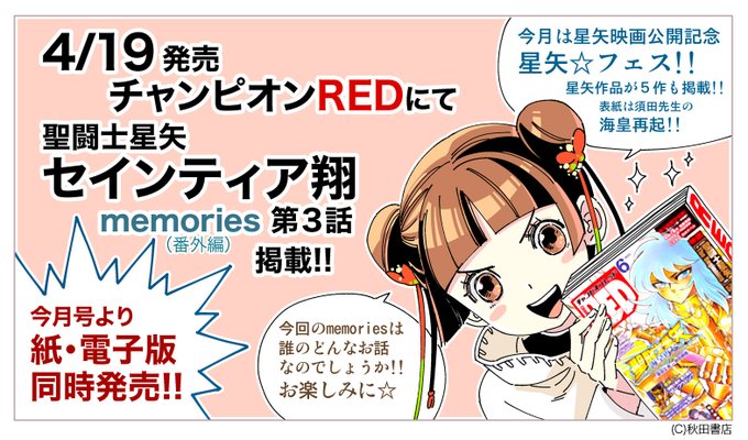 発売中のチャンピオンRED6月号、セインティア翔memories(番外編)はシャオリンが五老峰を訪れるお話となっております🌟 偶然にも春麗のお誕生日(4/20)のタイミングでの掲載となりました🎂✨ 原作ハーデス編で老師が五老峰を離れる時の春麗とのシーンが大好きです。 twitter.com/cmk_k/status/1…