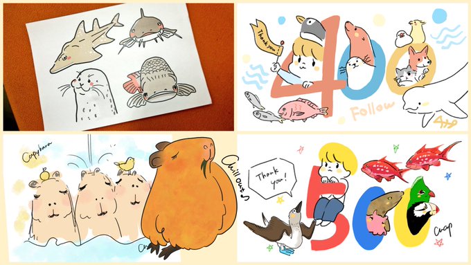 #今月描いた絵を晒そう 【ご依頼】 カットイラスト2点(非公開)、アイコン1点 【プライベート】 いきもの色々、似顔絵や送別用の色紙作り4人分 ipadを手にとって1年 自身を省みるためにも漫画に挑戦したところ、これをきっかけに沢山の方が繋がって下さいました💛