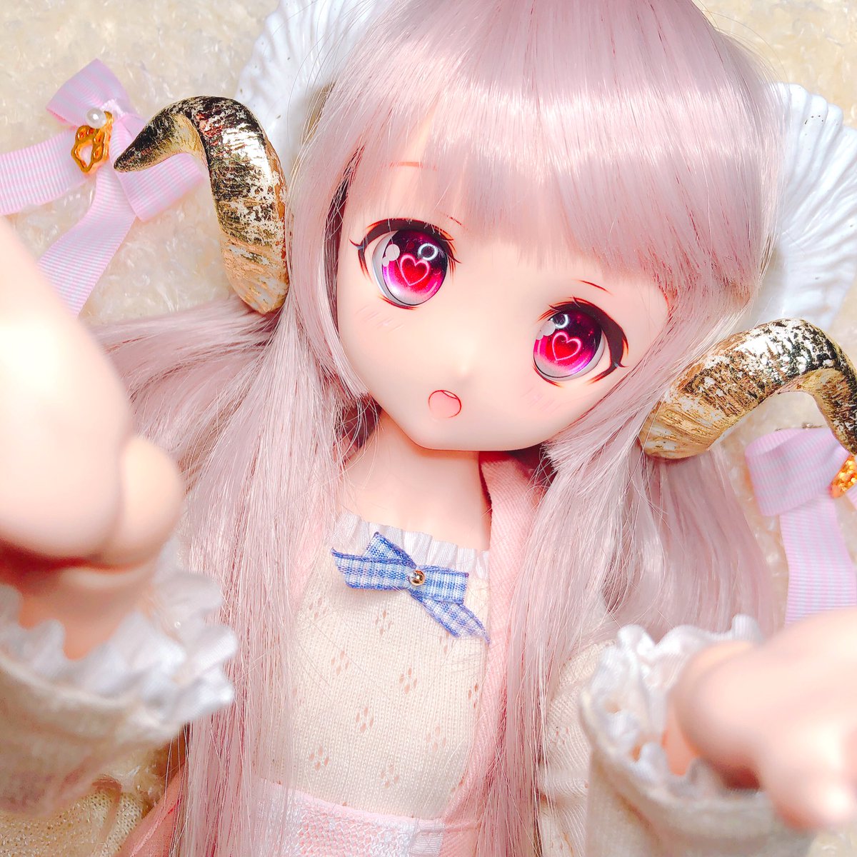 3 23 @yamTdoll 頭飾造形さま:角🐏 @nightcherry5419 夜桜さま:アイ👀 素敵なアイと羊角のご縁を貰ったのでウキウキしながらつけてみたらとっても可愛く ファンタジックに〜🥺❤️大事にします…! #夜アイ #MDDはいいぞ 20/11/24 20:44