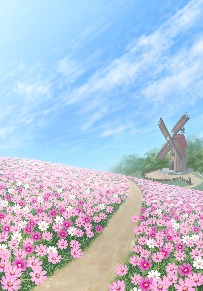 1 7 親戚にプレゼントするために、空を過去絵から借りてきてコスモス畑描きました。 他の人のために初めて絵を描きましたが、趣味絵とはまた違った感覚がありますね。 22/09/19 08:35