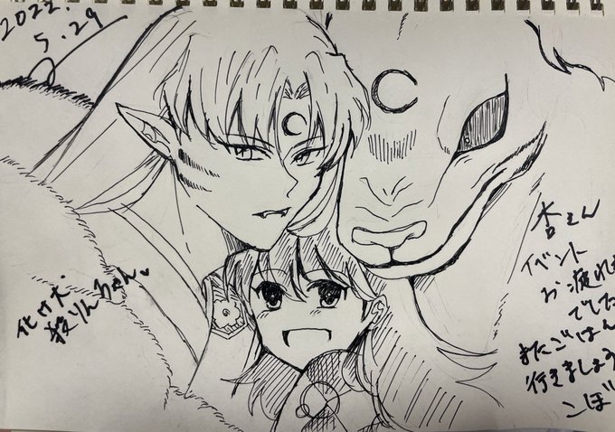 殺りんちゃんワンドロォオオオ 化け犬と少女だなんて私が参加しないはずがなあああああああいいいい!! 遅刻だけど!!!!!わっはっは!! そしてこれが私の1時間の限界だああああああああ(^ω^ ≡ ^ω^) #殺りん版深夜の真剣60分お絵描き一発勝負