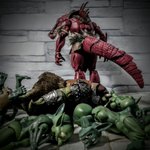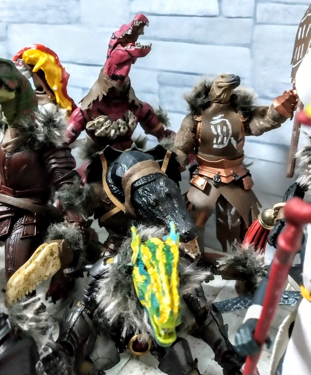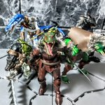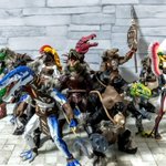 #気がはやいけど今年の完成品をあげる 今年できたのは多分これだけ。既製品を装飾したお手軽なのもあるけど、だいたいは多数のフィギュアをミキシングしたものになりました。だってそうしないとリザードマンができないんだもの…