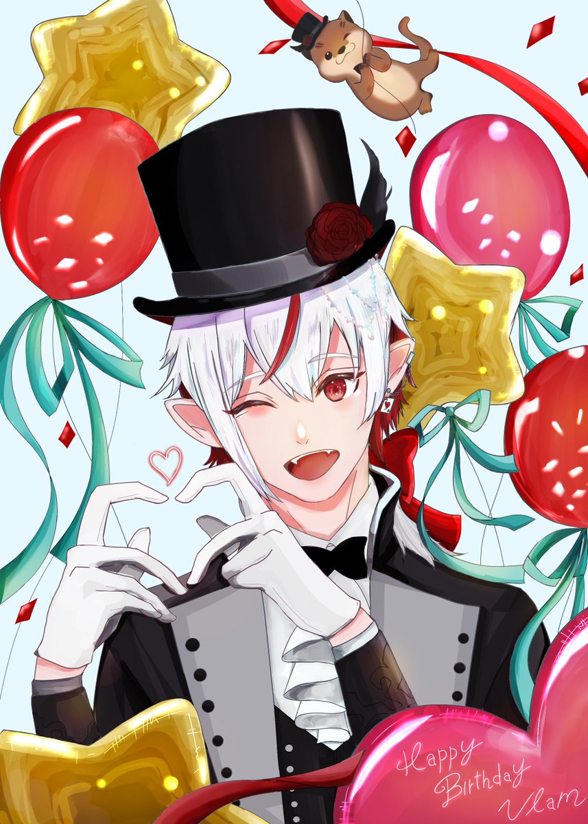 ヴラムくんHappybirthday!!! 🎈🦦🧛🎈 新たな1年がたくさんの幸せと可能性に満ちた日々でありますように💫 #朱渡ヴラム何歳か分からないけどおめでとう2022 #絵リュージョン