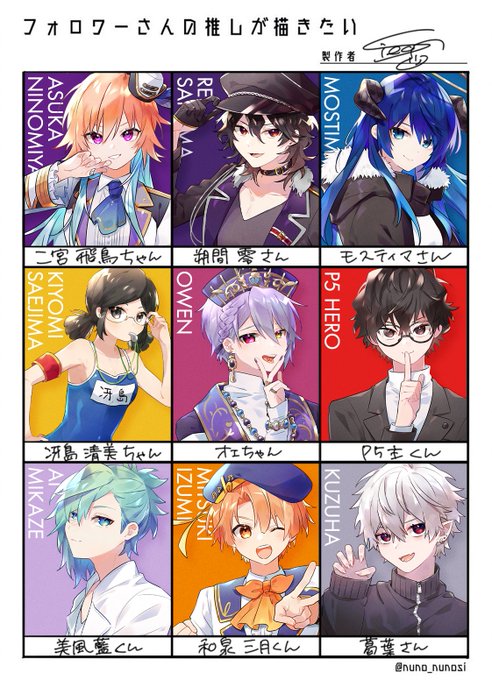 フォロワ〜さんの推し描くやつ、お待たせしました😭 めちゃくちゃ新鮮な気持ちで描かせていただきました〜構ってくださってありがとうございました🥳間違ってたらすみません!