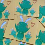 自分らしく 手描きっぽく カエルくんたちで 落ち着いた #年賀状2023 😊 実物はもう少し 背景が黄色っぽくて カエルくんも薄黄緑です🐸 #イラスト #デジタルイラスト #絵描きさんと繫がりたい #イラスト好きさんと繋がりたい #アート好きな人と繋がりたい #art #illustration