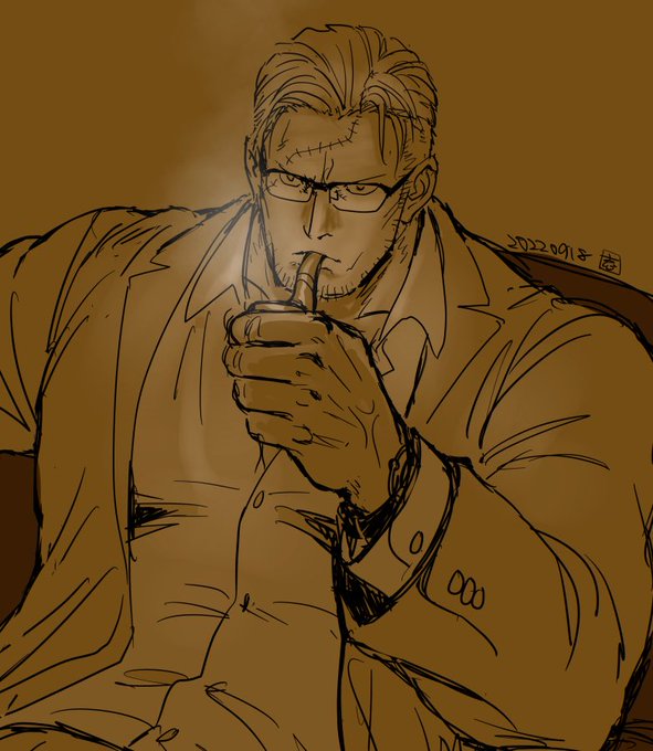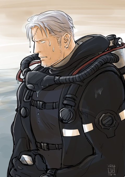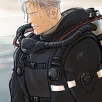 #ヒゲ版深夜の真剣お絵描き60分一本勝負 8/14お題 【潜水士/Nationally Licensed Marine Diver】 現パロ風ネイビーなMarine Diver🚬🚬で参加失礼します⚓️