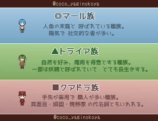 こんな雰囲気のキャラクターが登場する、とても平和な世界観のRPGを制作中です!(※タイトル未定) #ドット絵 #プレミアムツクールデー