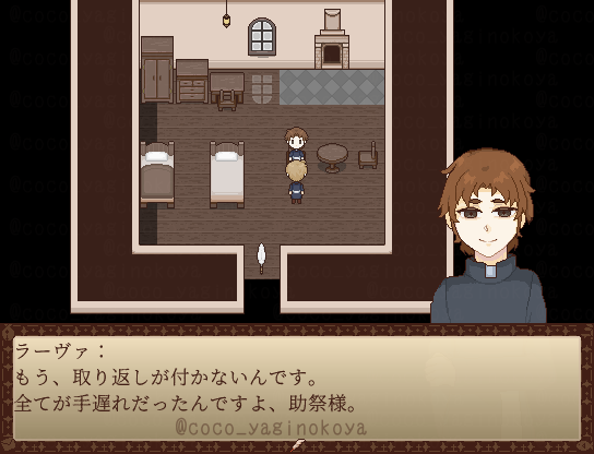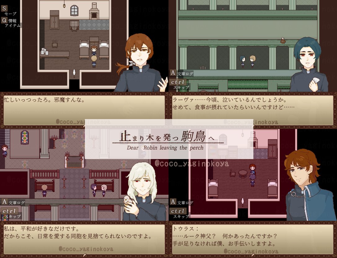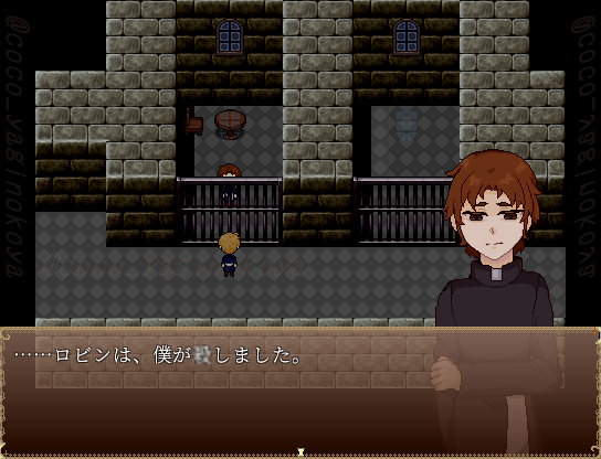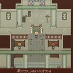「止まり木を発つ駒鳥へ」 ファンタジー世界の教会が舞台の ミステリーホラー風の探索ADVゲームを制作しています。 #ドット絵 #プレミアムツクールデー