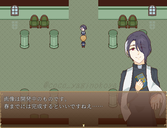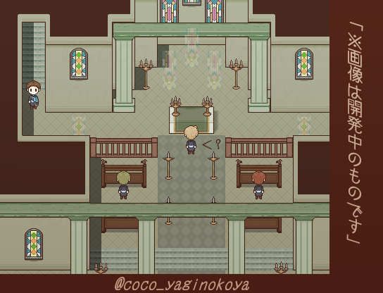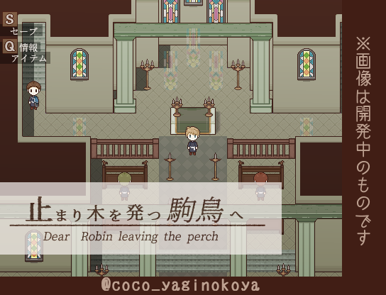 「止まり木を発つ駒鳥へ」 ファンタジーな世界観の教会を舞台にした ミステリーな雰囲気の、探索ホラーゲームを予定しています。 #ドット絵 #スーパーゲ制デー