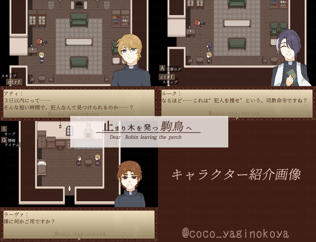 「止まり木を発つ駒鳥へ」 ミステリーホラー風の探索ゲームを制作しています。 ルーク神父の操作パートでは 過去にあった光景を視たり、その場の残留思念を読めます。 教会の人々と、亡くなったロビンとの関係性が分かるかも……? #ドット絵 #スーパーゲ制デー