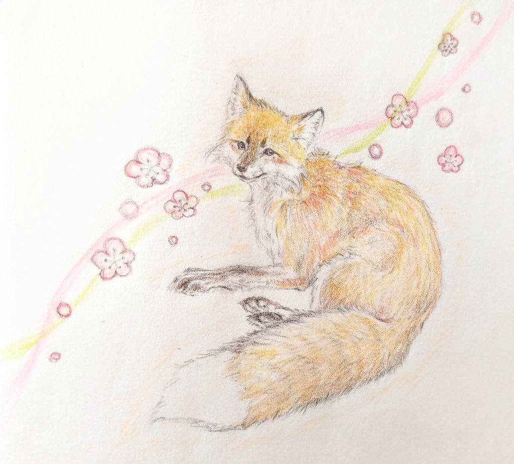 43 183 狐梅~ #キツネ #らくがき 22/03/21 15:34