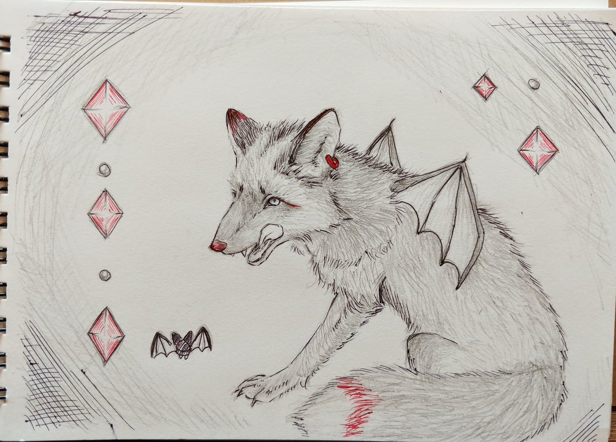 #inktober2022 #inktober2022day3 コウモリギンギツネ
