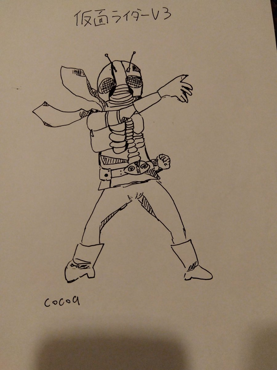 仮面ライダー全員書いたらどれだけ上手になるか計画 V3 #イラスト #絵 #仮面ライダー