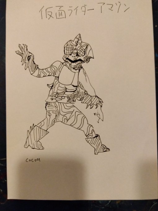 仮面ライダー全員書いたらどれだけ上手になるか計画 仮面ライダーアマゾン #イラスト #絵 #仮面ライダー #一発書き
