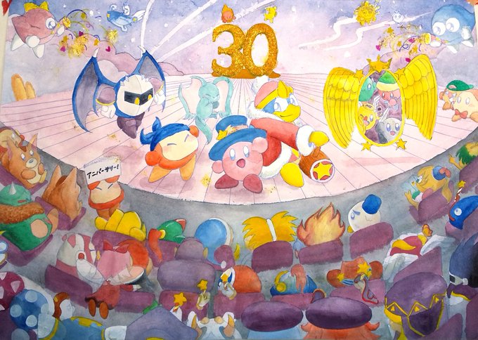 やぁっと完成したぁ!(大遅刻) 遅ればせながら、カービィ・デデデ大王、30周年おめでとう!!!これからも、思い出と美味しいものをいっぱい吸い込んで、膨らみ続けていってね! #カービィ30周年 #カービィイラスト #イラスト