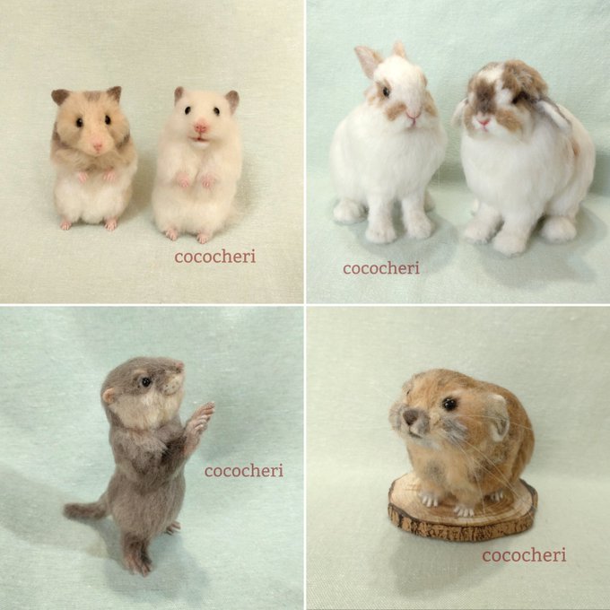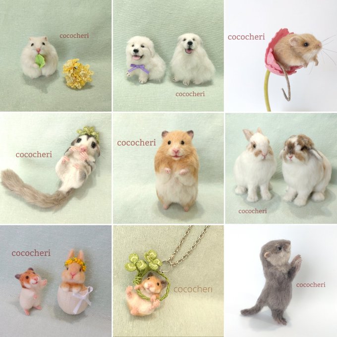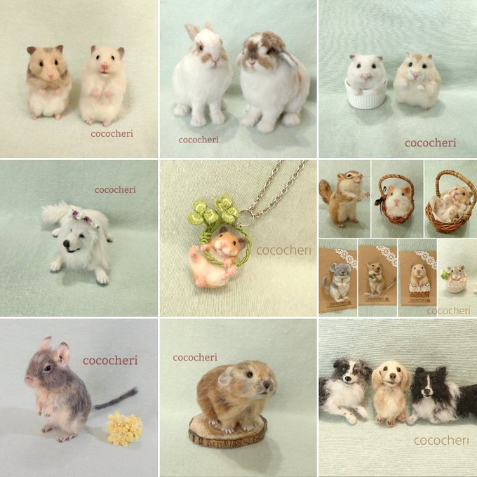 羊毛フェルトで手のひらサイズの動物たちや、小さなブローチなどを制作しています。この子達と出会い、幸せな気持ちになっていただけたら、とても嬉しいです。 minne.com/cococheri @Lupopo_cafe 様。いつも素敵な企画展をありがとうございます。