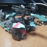 ヘキサギア ボルトレックス ゾアテックスモード 恐竜タイプの2脚で動かなそうな見た目とは裏腹に各所が柔軟(その性で安定しない感もある) 無機質な香りと言われがちだけど、目もあるしちゃんと顔になってるのが👍️ デスクトップアーミーとの親和性(略 #ヘキサギア #デスクトップアーミー