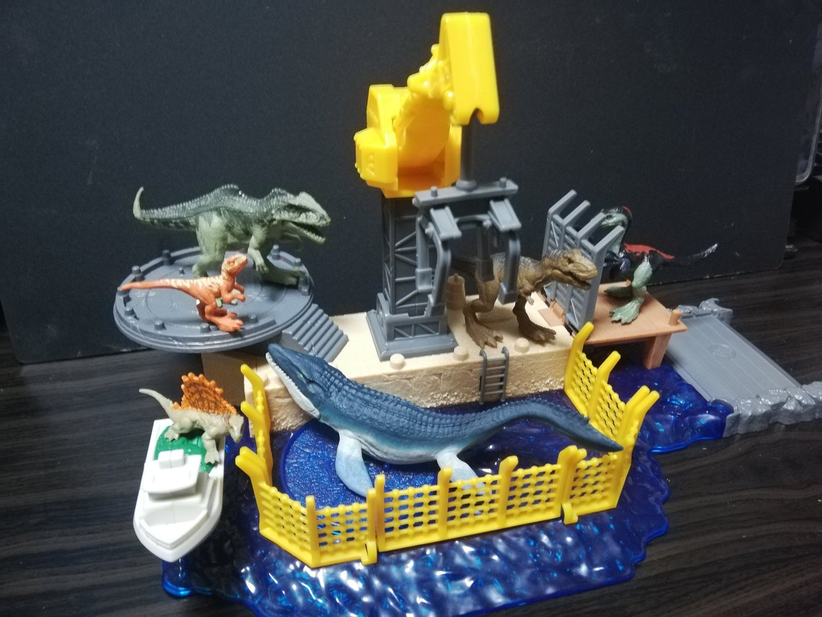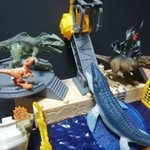 ジェラシック・ワールド ミニフィギュアプレイセット モササウルス・・・・・・よりデスクトップアーミー大暴れ!! ちょうど良いジオラマ感とギミックで遊べる良いプレイセット👍️ 恐竜と絡ませてもたーのしー٩( 'ω' )و✨ #ジオラマ #デスクトップアーミー