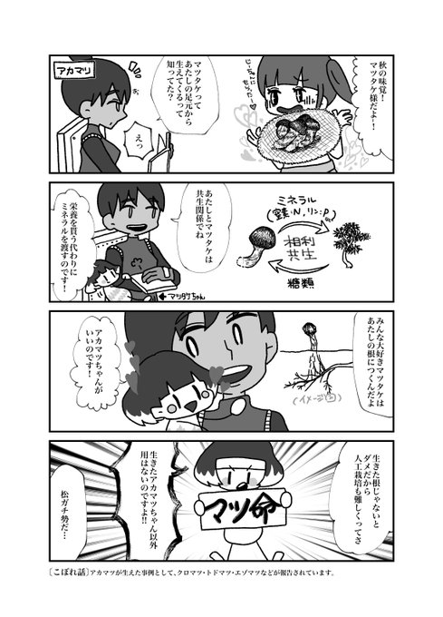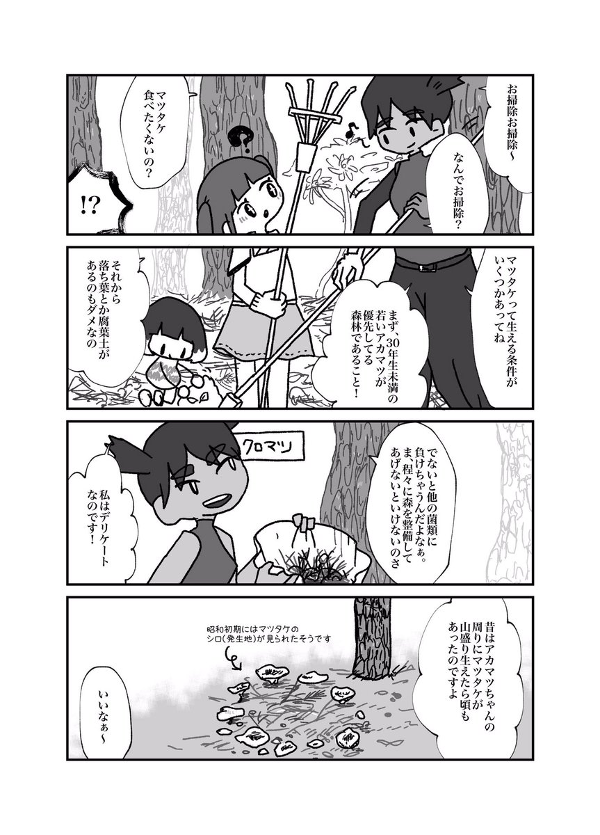 樹木れぽーと2巻はアカマツの話が中心です。みんな大好きマツタケや日本各所で発生しているマツザイセンチュウ病についての話です。(P12/B5/300円) #樹木れぽーと #関西コミティア #漫画が読めるハッシュタグ