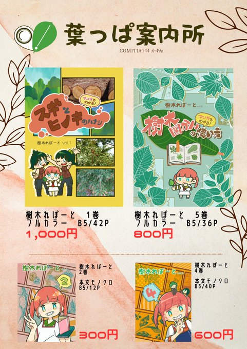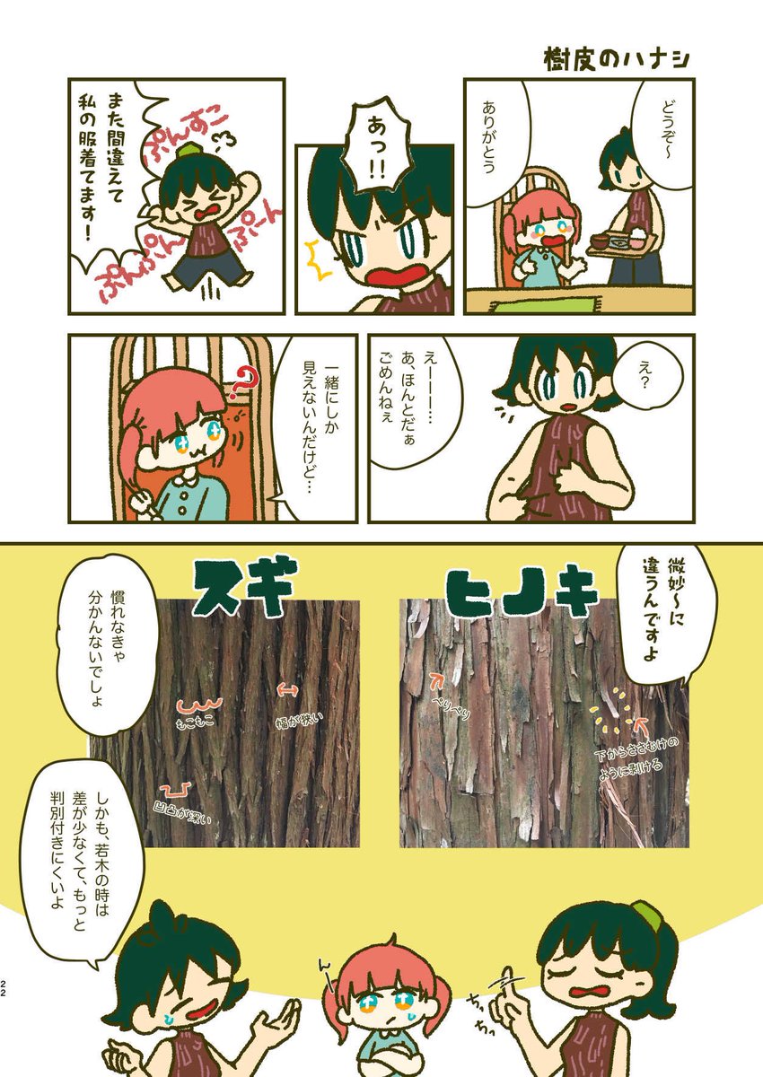 樹木れぽーと6巻は1巻のフルリメイクです!スギとヒノキの見分け方やあれそれをより分かりやすく漫画にしました!あと3巻に収録したウラスギの話も加筆修正して収録しました。B5/42ページで1,000円の頒布予定です。どうぞよろしくお願いします〜! #COMITIA144 #樹木れぽーと