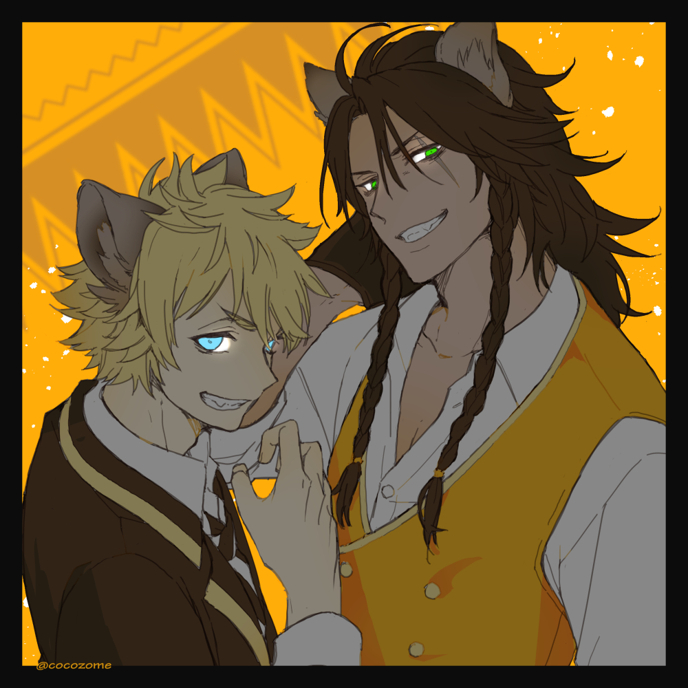 レオナさんとラギーくん。コンビ名とかあったら呼びやすいなぁ。 #ツイステファンアート
