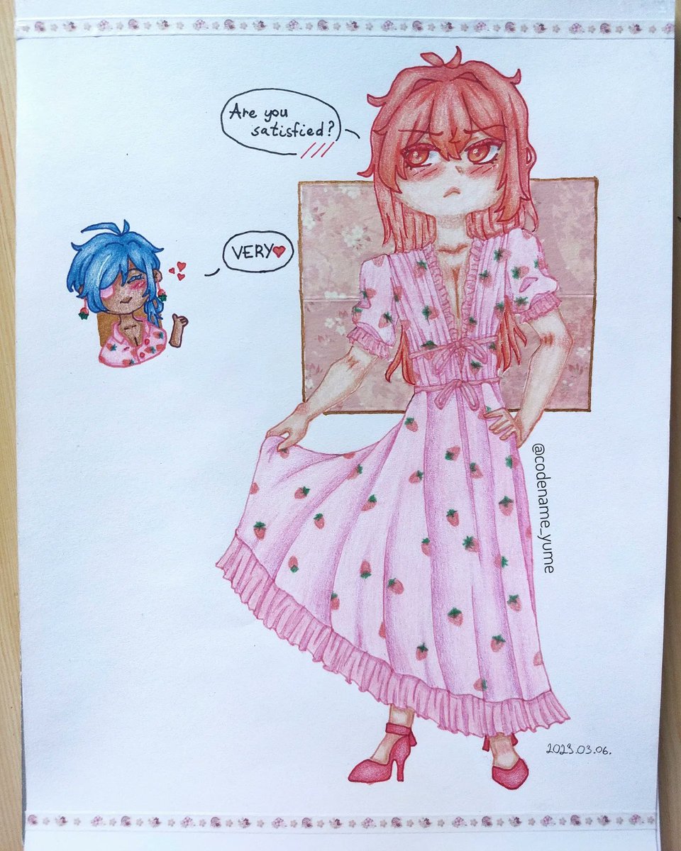 7 20 Diwuc in the strawberry dress, i HAD to🍓💕😂 #kaeluc #Diluc #Kaeya #genshinimpactfanart 23/03/08 02:54