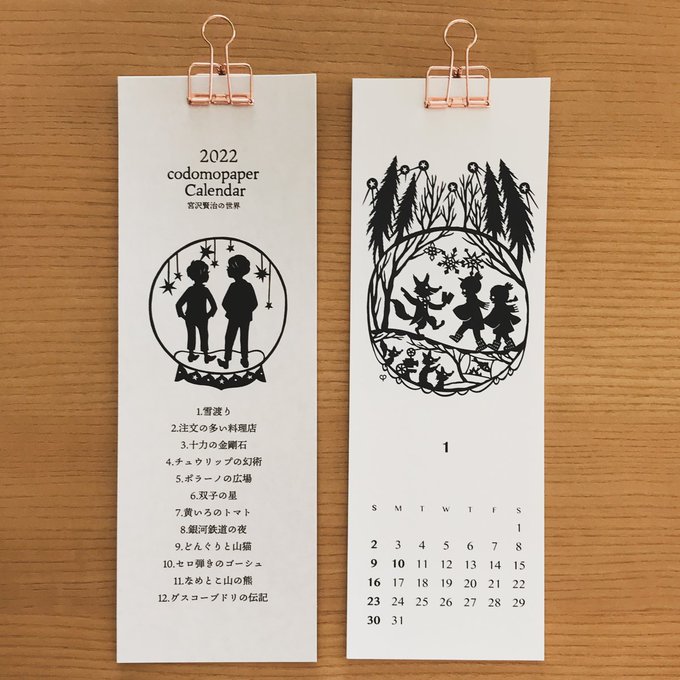 2022年のカレンダーを発売開始しました! 今回は宮沢賢治の作品をテーマに作成しています。どうぞよろしくお願いします🌟 匿名配送をご希望の方はBOOTHをご利用ください。 codomopaper.booth.pm/items/3402120