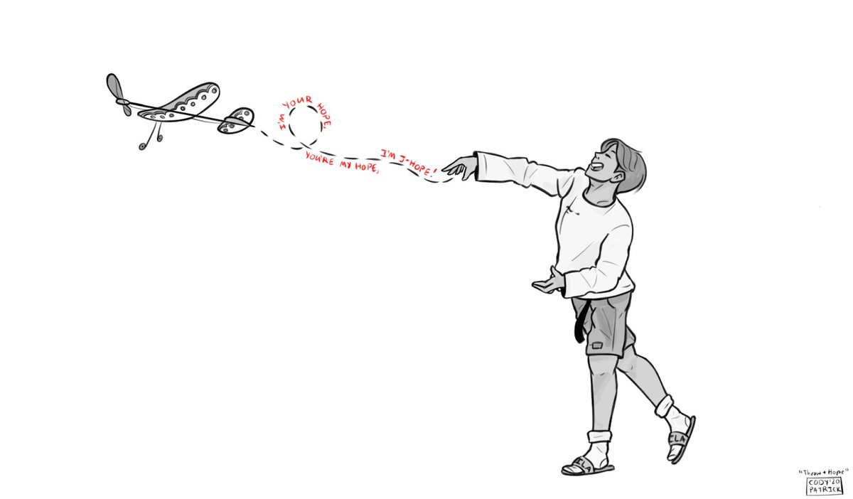 missed my inktober drawing yesterday so i combined it with today's prompt. inspired by hobi and his glider from in the soop💜 inktober day 9 & 10: "throw" & "hope" #inktober #inktober2020 #inktober2020day9 #inktober2020day10 #BTS #BTSInTheSoop #JHOPE #HOSEOK @bts_bighit