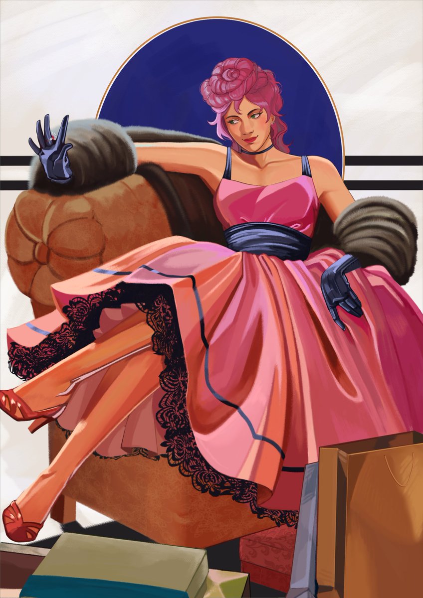 my piece for @trishuna_zine 💍🛍️💗 loved to paint this dress #jjba #JoJosBizarreAdventure #ventoaureo