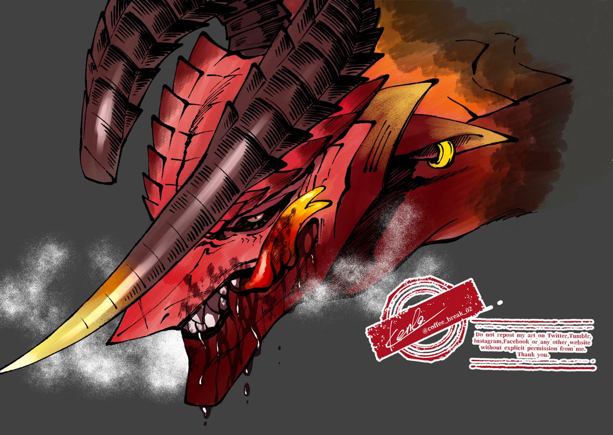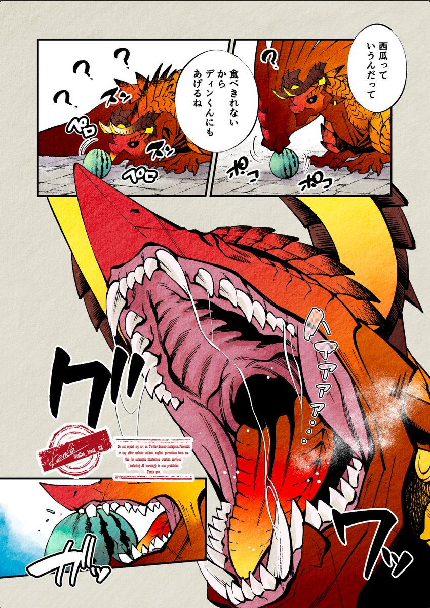 skeb.jp/@coffee_break_… #Skeb #Commission @skeb_jp より 大変お待たせしました、skebのご依頼でディンくん描かせていただきました。 何かを頬張ってる姿が見たいとのことだったので夏ですし西瓜食べてもらいました。 食べる姿だけでライちゃんをビビらせるディンくんです。
