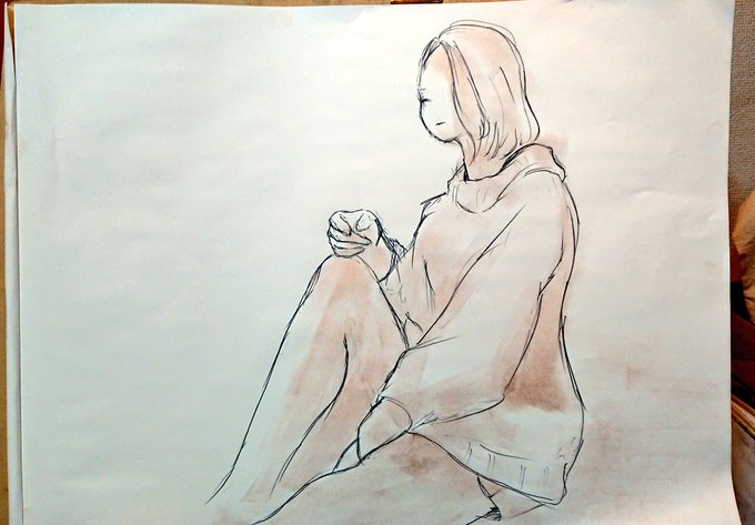 10分クロッキー。 木炭紙大 650mm×500mm 鉛筆+パステル #絵 #art #アート #イラスト #アナログ絵
