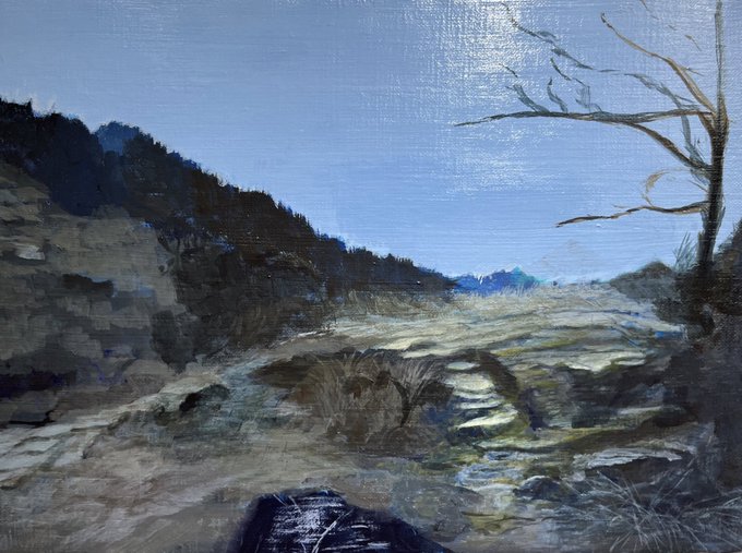 今日、開始の風景画。 前回より小さいとはいえ今回はかなり進んだなー。 合計9時間くらい U-35 キャンバスF8 #絵 #art #アクリル画 #アート