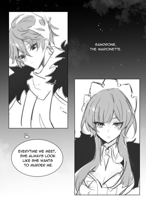 messy comic but just a hc based on childe's voice line about sandrone 🤔