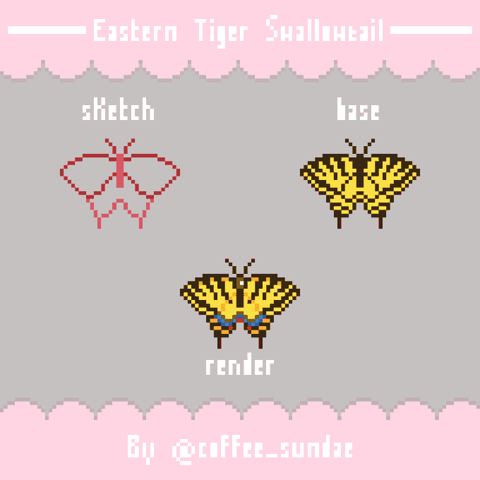 2 1 💡3-step workflow of the study I made about butterflies #pixelart #ドット絵 #aseprite 22/08/18 11:10