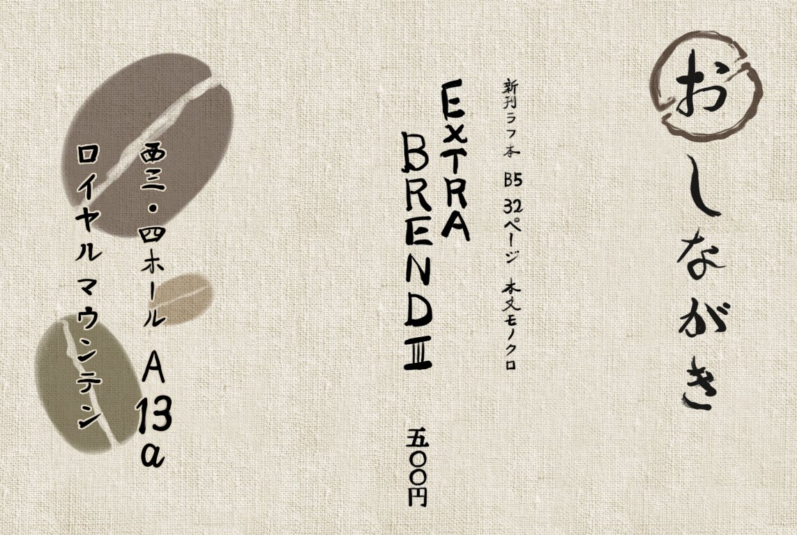 コミック1☆22のロイヤルマウンテン新刊ラフ本 【EXTRA BLENDⅢ】が各書店様の通販で予約開始になりました よろしくお願いします。 ★軸中さん artjeuness.jp/item/22696/ ★メロンさん melonbooks.co.jp/detail/detail.… ★とらさん ecs.toranoana.jp/tora/ec/item/0…