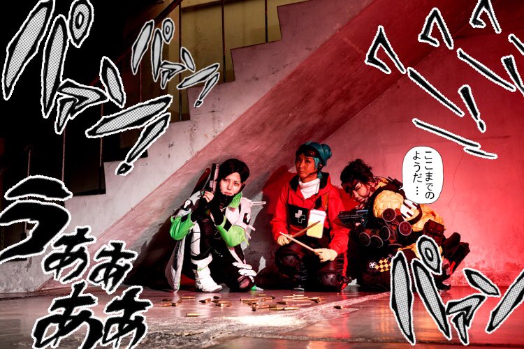 APEX Cosplay ①白アーマーのまま残り4部隊まで来てしまい突然大乱闘が始まり出るに出れなくなった3人 ②結局芋りがバレ、ガスを投げ込まれて詰む3人 ライフライン@naitoto3 ミラージュ@yozy_djb_mdn クリプト@コフィー #APEX #ApexLegends #エーペックスレジェンズ #コスプレ