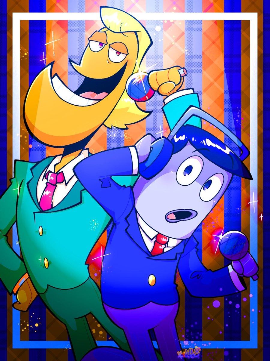 #WelcomeHome #WelcomeHomeoc コピックでDesmondさん💜🪩とCyanちゃん💛🧵を描きました 久しぶりのコピックだったので、なるべく滲んではみ出さないように塗るのが…大変でしたね……_:(´ཀ`」 ∠):