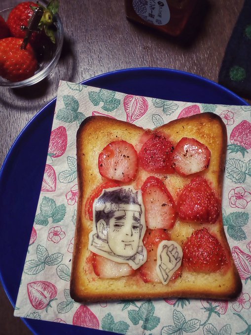 ラムレーズンならぬ、ラム干し柿あんバタートースト。 自家製白あんと干し柿がよく合うし、ラム酒の香りで高級感がある。 メンコ絵だけど完結1周年記念で最終話イメージ。 去年の4月はこんなんばっかやってたなあ… #オブアート※トレス twitter.com/coi_san_dai2/s…